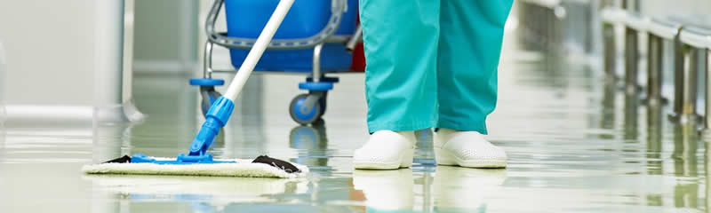 Por último realizaremos un barrido de los suelos con mopa húmeda de microfibra y un fregado con mopa de fregar de microfibra, sistema de doble cubo y detergente desinfectante de amonios cuaternarios.